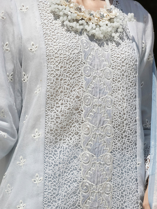 Light Grey Khaddi Net 3Pc Stitched - ALP-3PS-1273