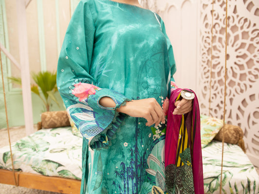 Teal Cambric 3Pc Unstitched - ALP-3PS-1186