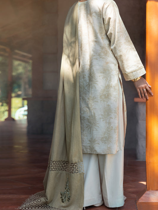 Beige Jacquard 3Pc Unstitched - ALP-3PS-1394