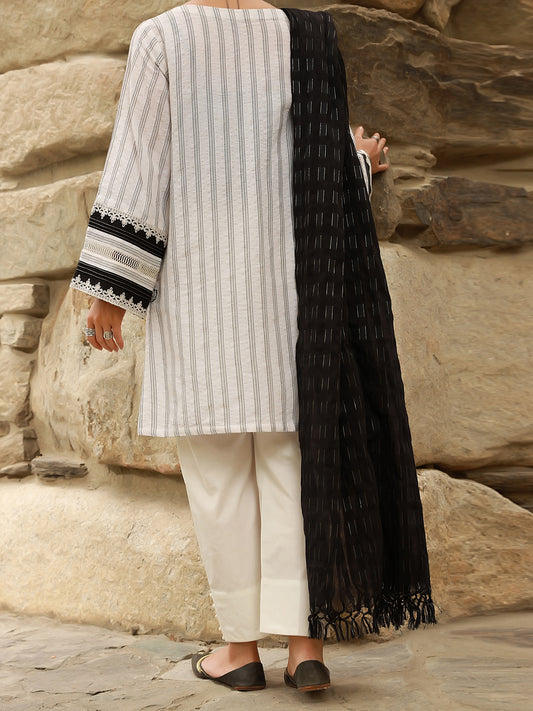 Off White Dobby 3Pc Stitched - ALP-3PS-1832