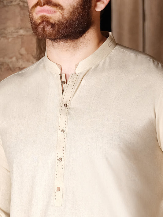 Beige Blended Kameez Shalwar - AL-KS-3105
