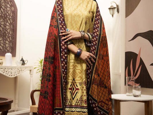 Multicolor Maple Silk 3Pc Stitched - AWP-3PS-672