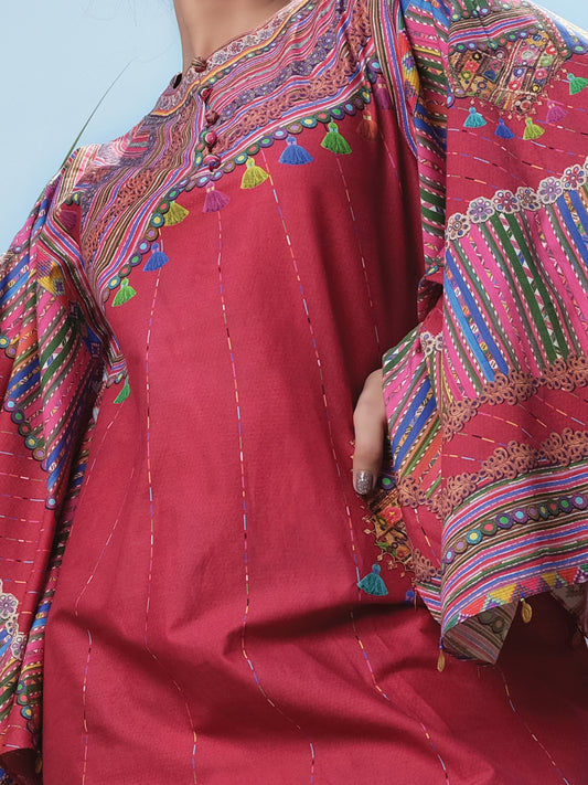 Red Cambric 3Pc Stitched - ALP-3PS-1426