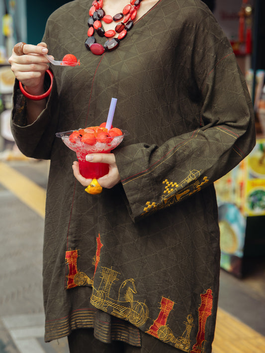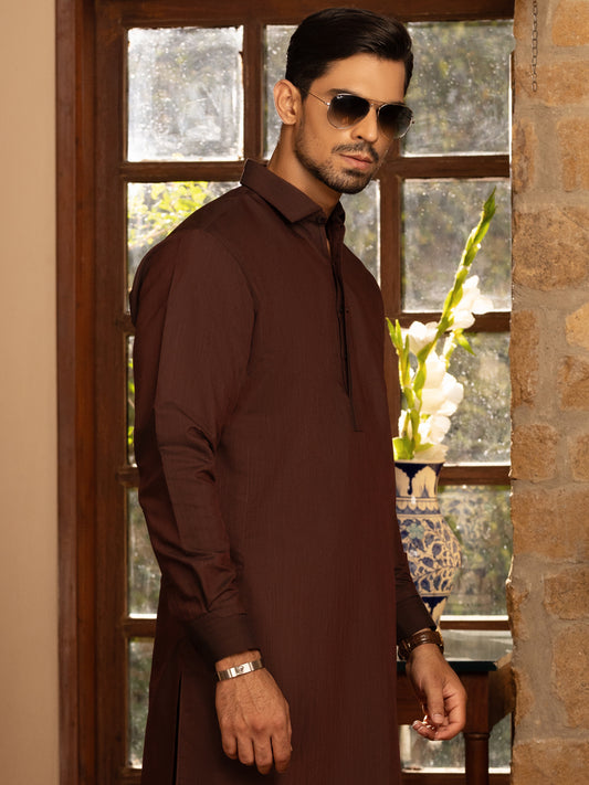 Brown Blended Kameez Shalwar - AL-KS-3150