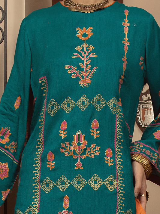 Turquoise Raw Silk 3Pc Stitched - ALP-3PS-1432