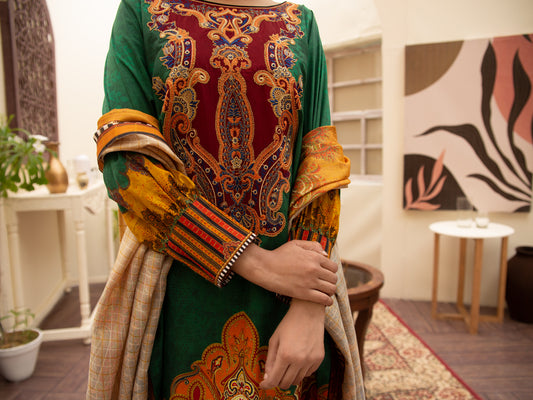 Pista Green Khaddi Net 3Pc Stitched - ALP-3PS-1271