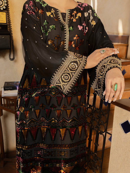 Black Cambric 3Pc Unstitched - ALP-3PS-1907