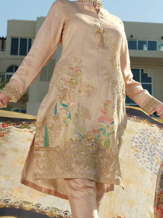 Peach Raw Silk 3Pc Stitched - ALP-3PS-905