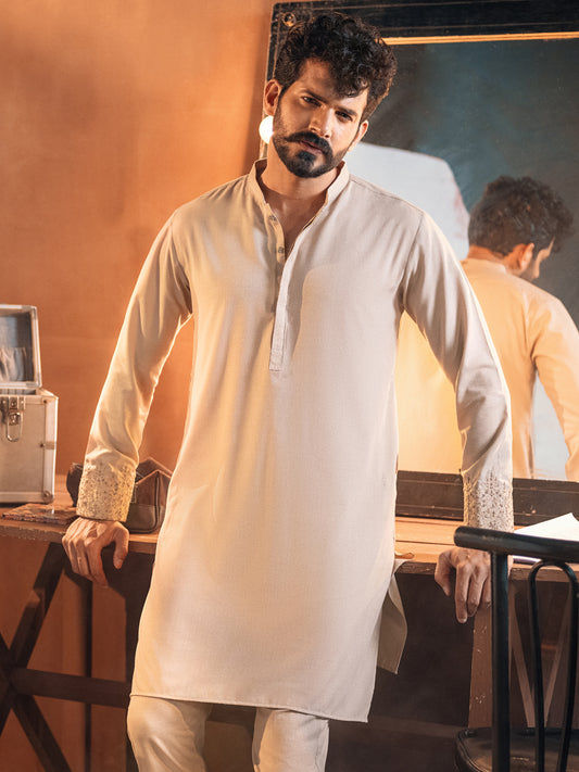 Beige Blended Kurta Trouser - AL-KT-2692