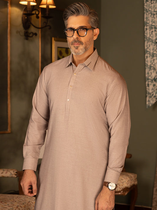Beige Blended Kameez Shalwar - ALWA-KS-475