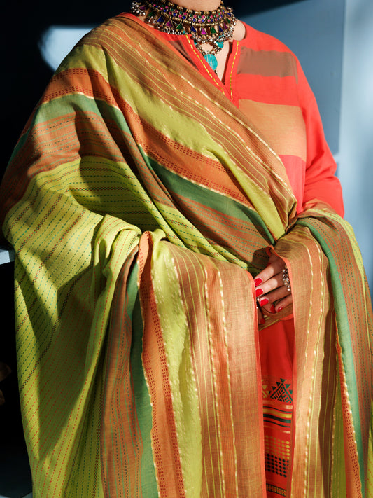 Orange Yarn Dyed Jacquard 3Pc Unstitched - ALP-3PS-1888