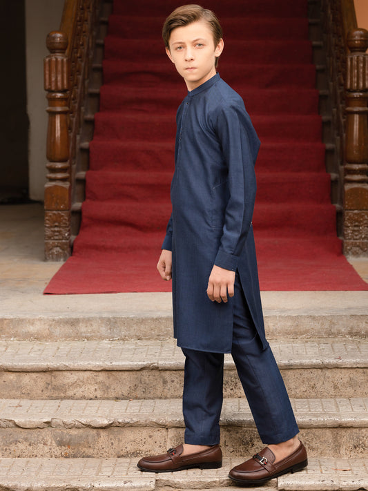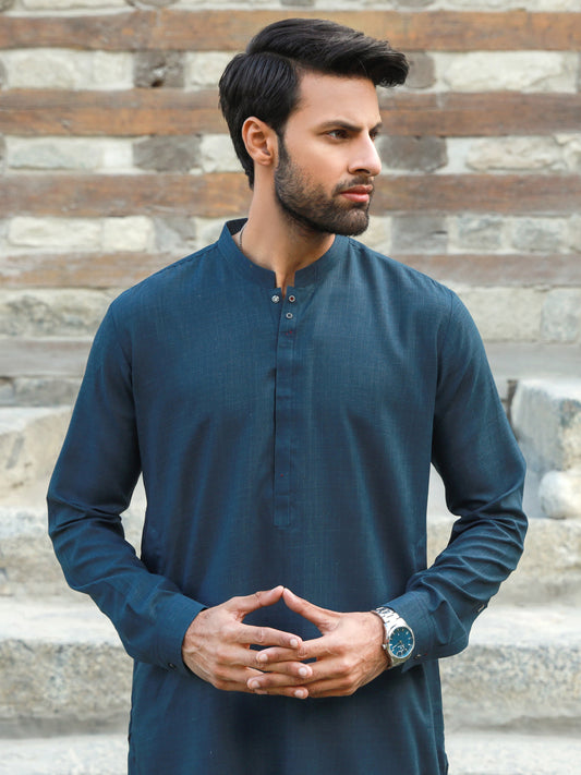 Light Blue Blended Kameez Shalwar - AL-KS-3156