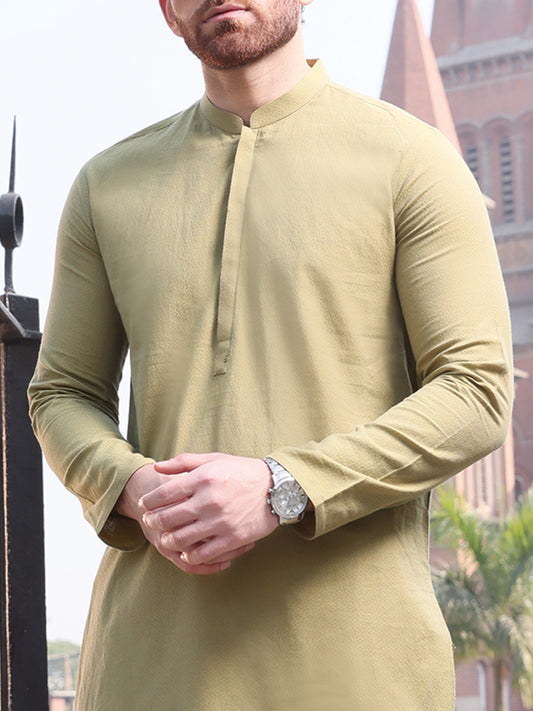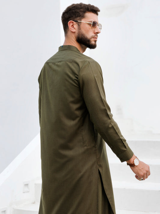 Olive Blended Kameez Shalwar - AL-KS-3159