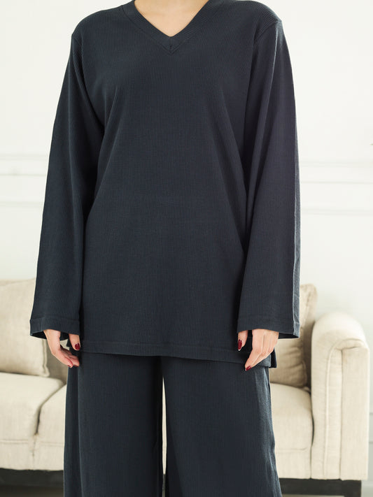 Grey Knitted Co-Ord Set with Matching Slides - AWP-LKSFW-733