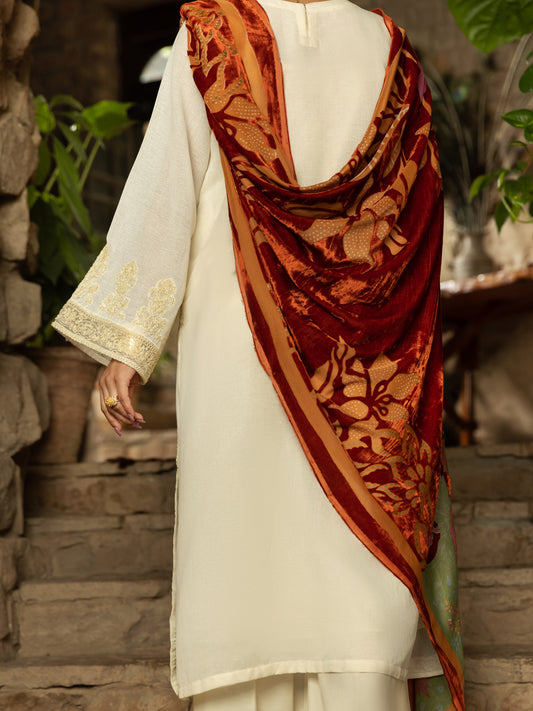 Cream Lawn 3Pc Stitched - ALP-3PS-1296