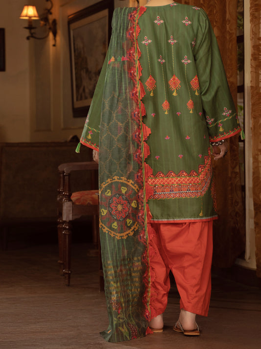 Army Green Cambric 3Pc Stitched - ALP-3PS-1427
