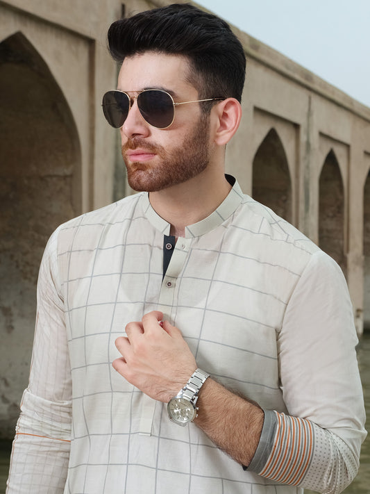 Beige Blended Kameez Shalwar - AL-KS-3109