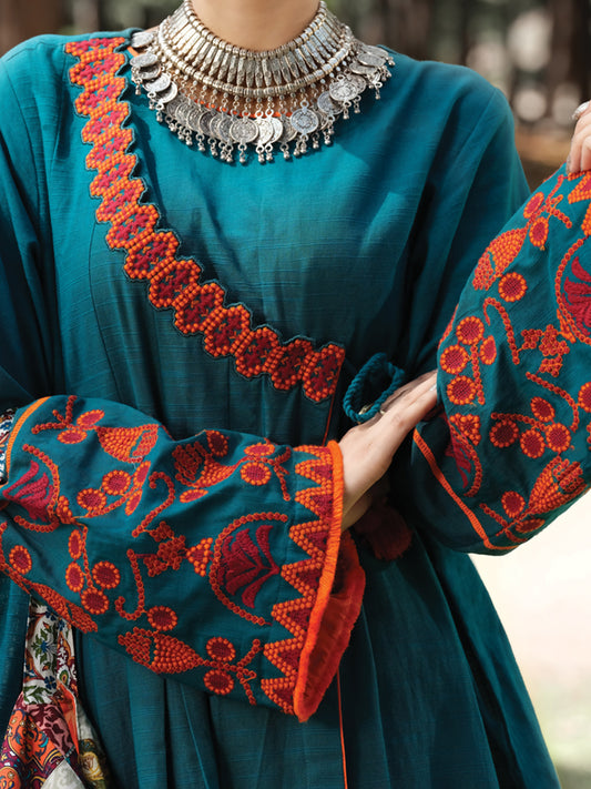 Prussian Blue Jacquard 3Pc Unstitched - ALP-736