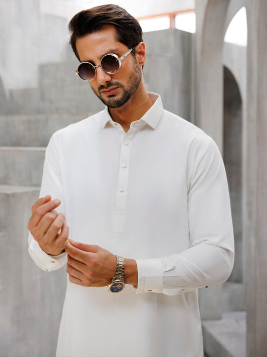 Cream Blended Kameez Shalwar - ALWA-KS-188