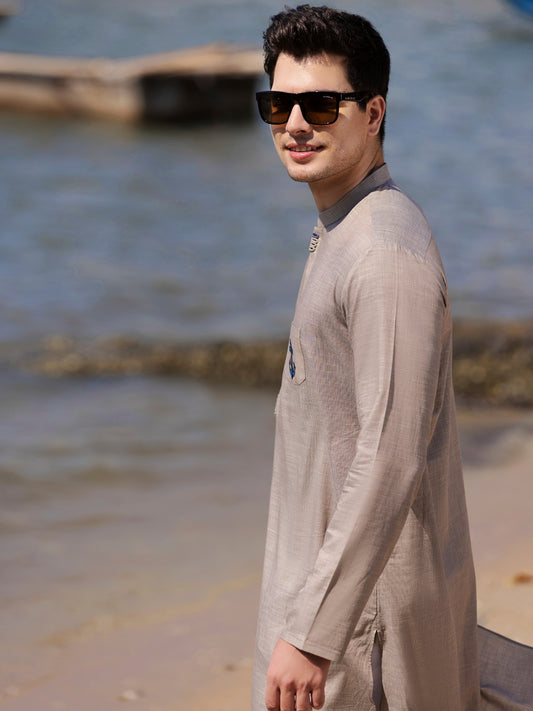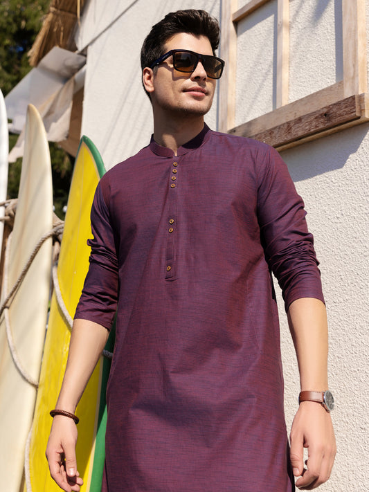 Brown Cotton Kameez Shalwar - ALWA-KS-472