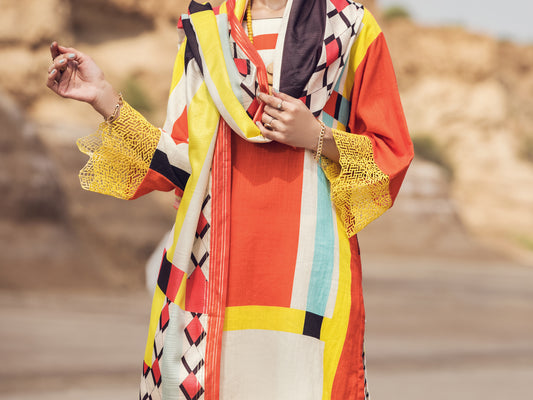 Orange Karandi 3Pc Unstitched - AWP-3PS-352