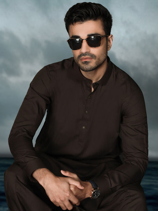 Dark Brown Blended Men Unstitched Fabric - AL-Nizam-22