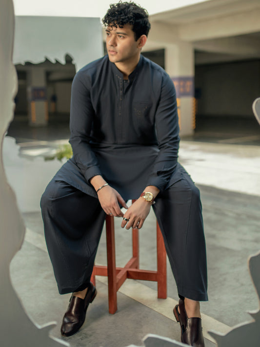 Navy Blue Cotton Kameez Shalwar - ALWA-KS-441