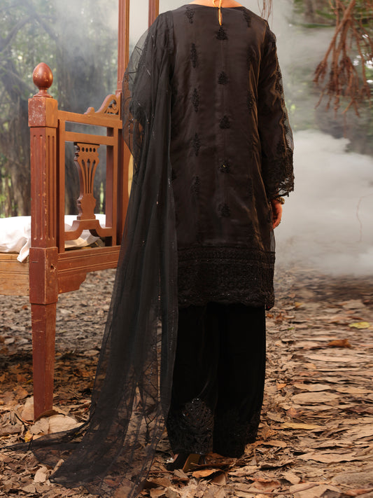 Black Organza 3Pc Formal Unstitched - AL-3PS-LS-UN-393