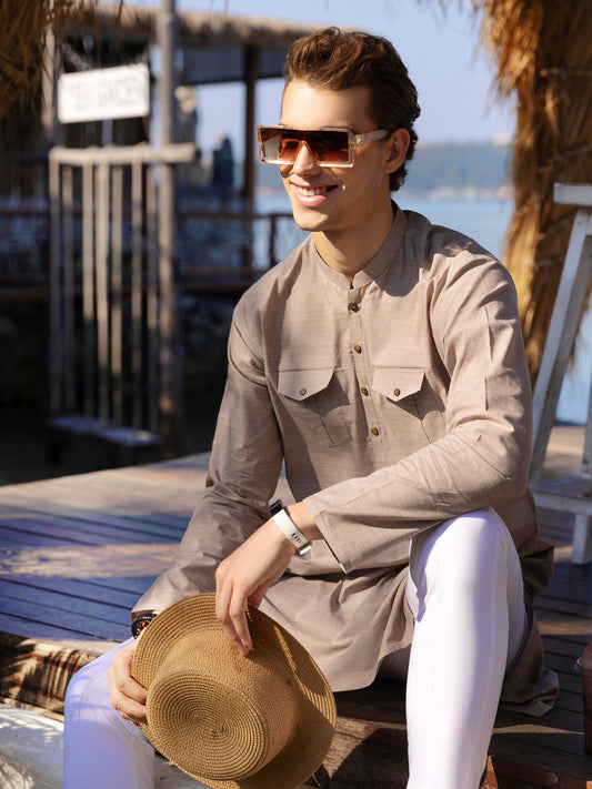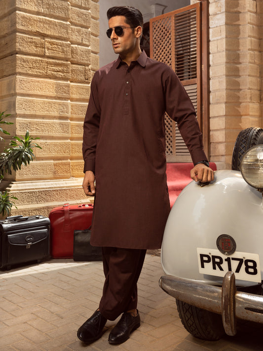 Brown Blended Kameez Shalwar - AL-KS-3052
