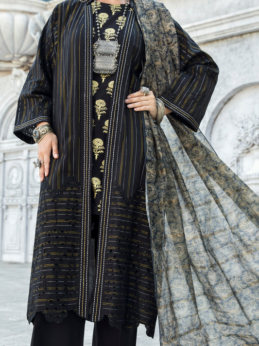 Black Lurex Jacquard 3Pc Unstitched - ALP-3PS-1192