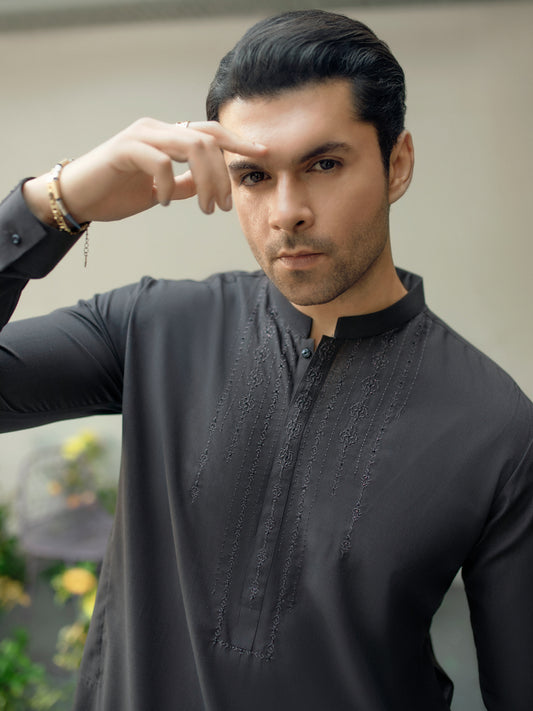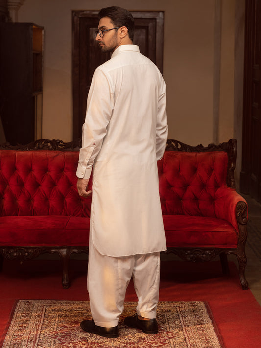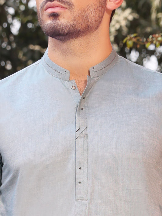 Ash Grey Blended Kameez Shalwar - AL-KS-3077