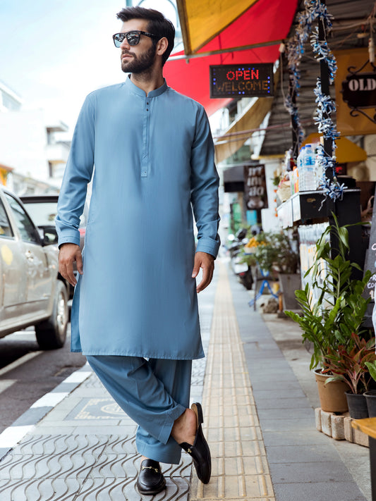 Light Blue Cotton Kameez Shalwar - AL-KS-2530