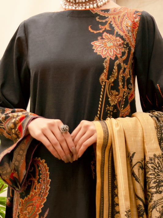 Black Cambric 3Pc Unstitched - ALP-3PS-1180