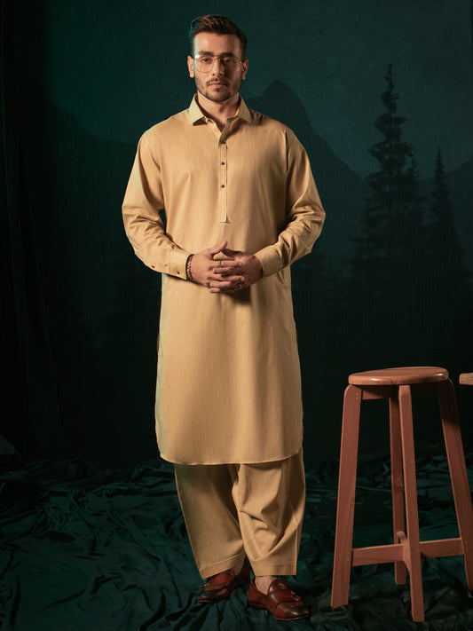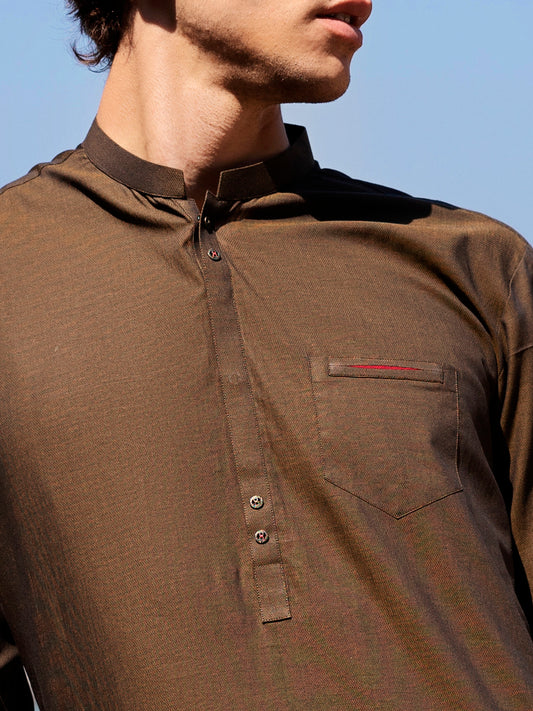 Dark Brown Blended Kameez Shalwar - ALWA-KS-466