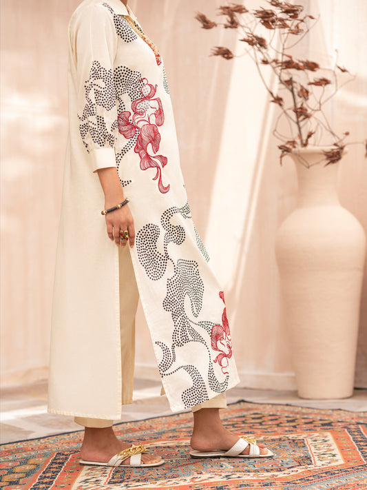 Off White Blended Kameez Shalwar - AL-KS-2441