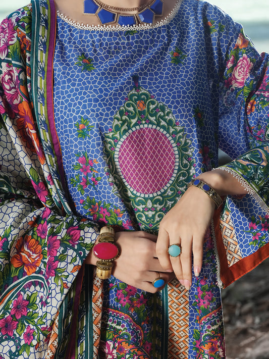 Turquoise Viscose 3Pc Unstitched - ALP-3PS-1092