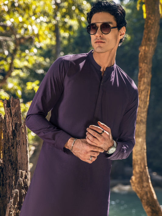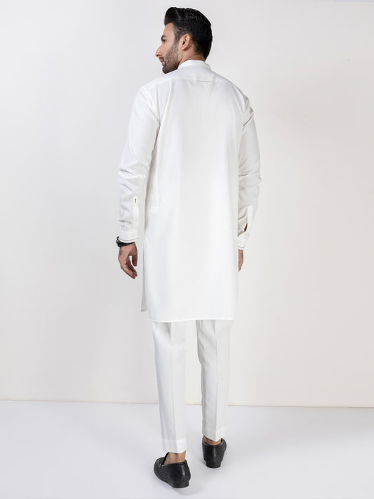 Light Grey Blended Kameez Shalwar - AL-KS-3207