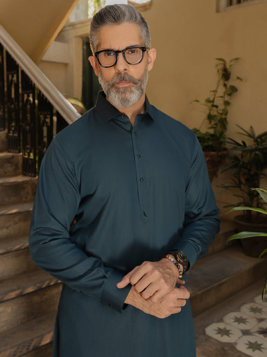 Teal Blended Kameez Shalwar - ALWA-KS-492