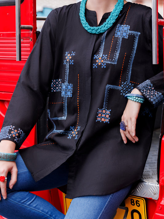 Black Blended Unstitched Fabric - AL-UN-NZM-6193