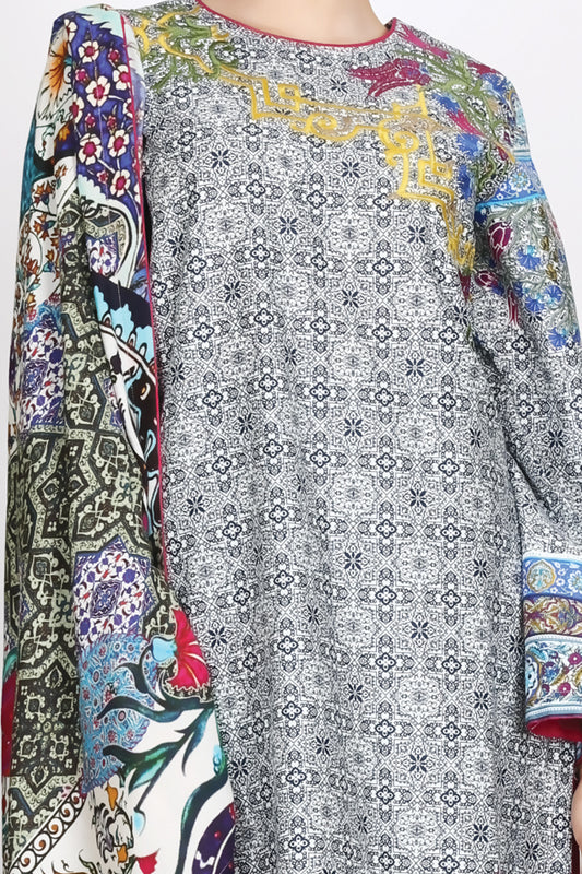Black & White Silk 3Pc Formal Stitched - AL-3PS-LS-379