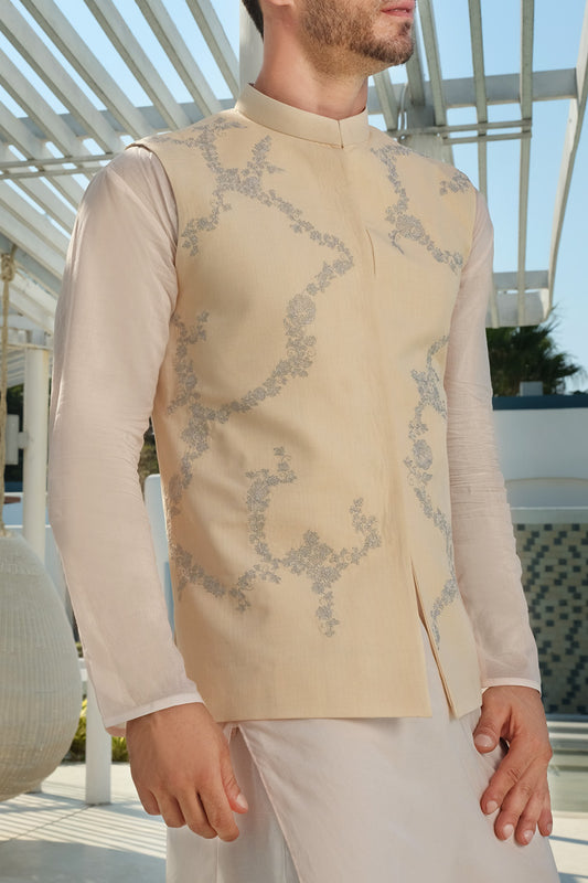 Cream Blended Unstitched Fabric - AL-UN-JHR-15054