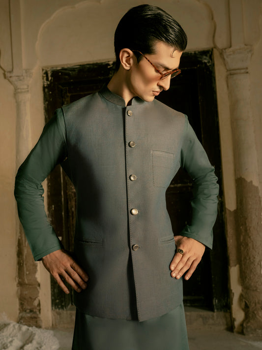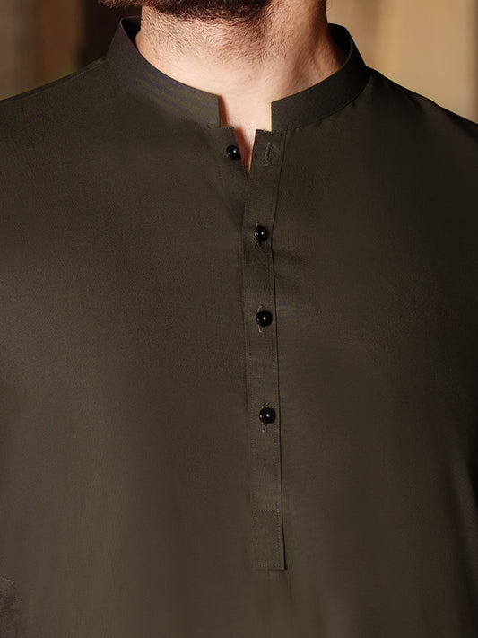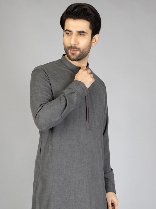 Charcoal Grey Blended Kameez Shalwar - AL-KS-2866