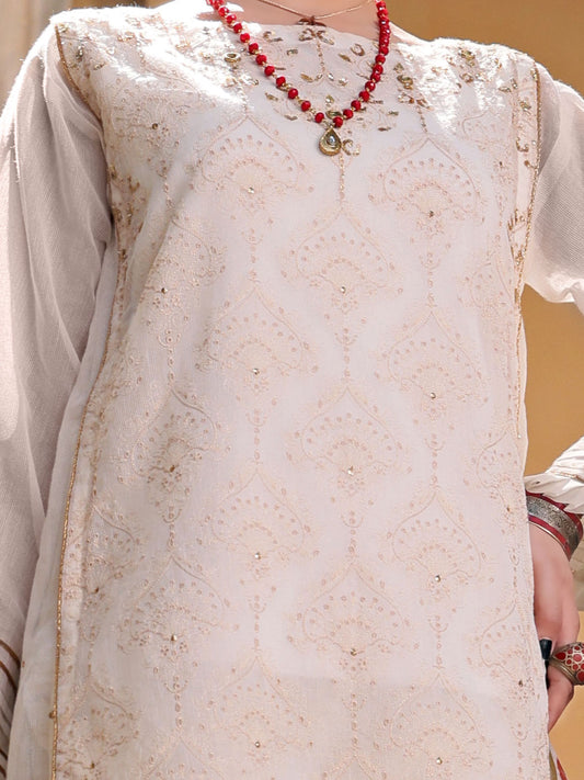 Off White Khaddi Net 3Pc Unstitched - ALP-3PS-898