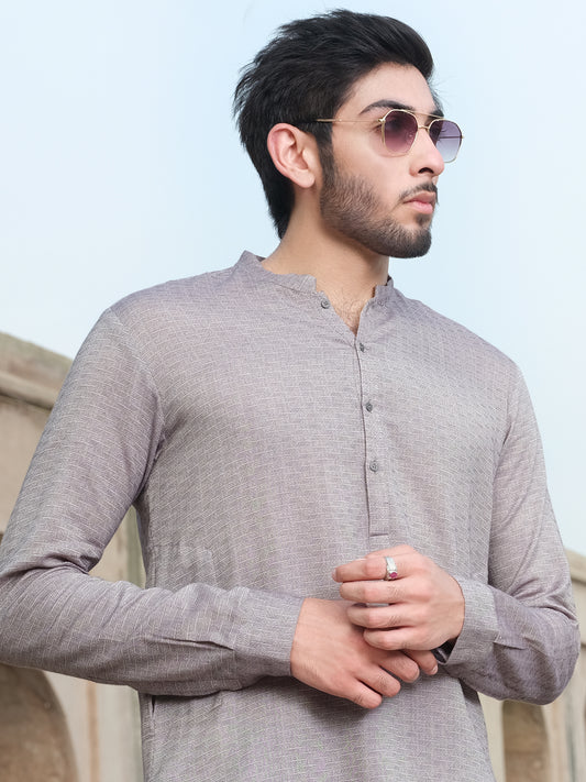Light Grey Blended Kurta Shalwar - AL-KS-2639