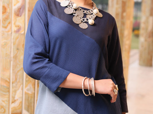 Navy Blue Self-Dobby 2Pc Stitched - ALP-2PS-LKS-1071