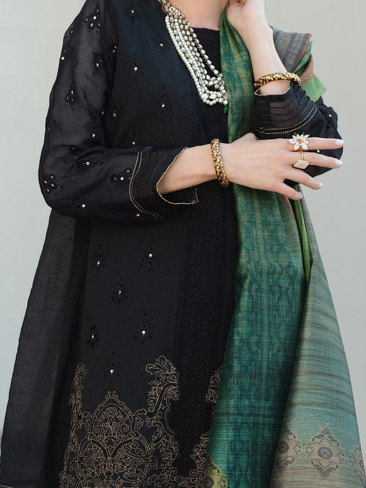 Black Khaddi 3Pc Stitched - ALP-3PS-901