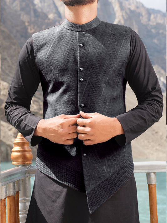 Black Dobby Unstitched 3Pc - AWP-3PS-421