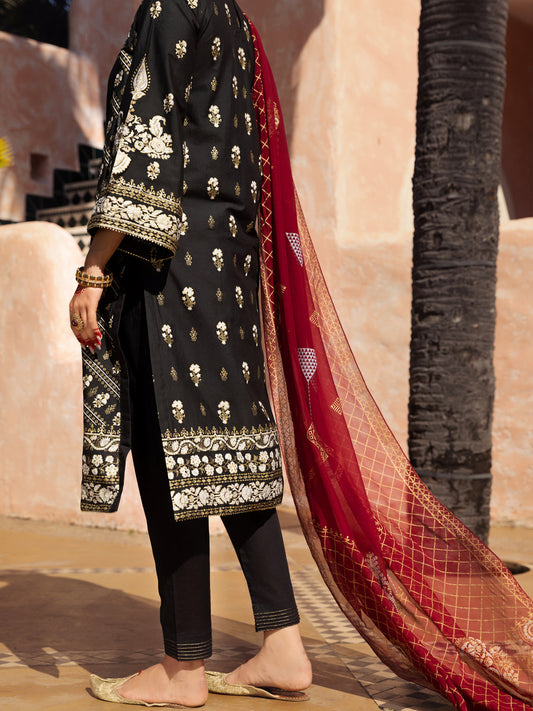 Black Cambric 3Pc Stitched - ALP-3PS-1180