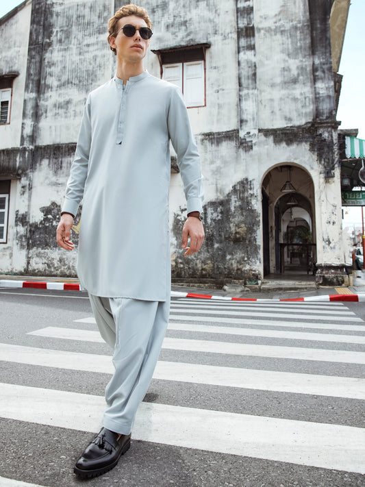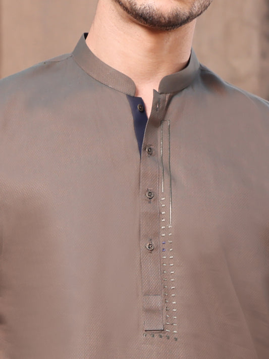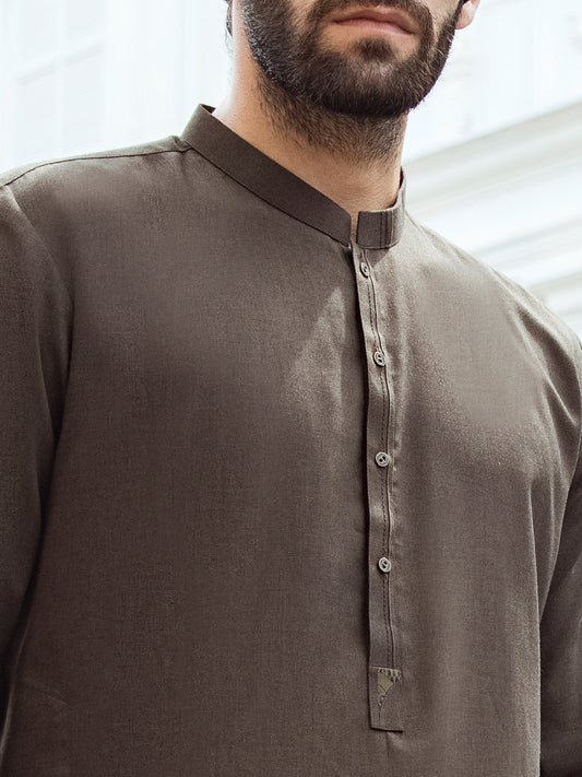 Charcoal Grey Blended Kameez Shalwar - AL-KS-2695