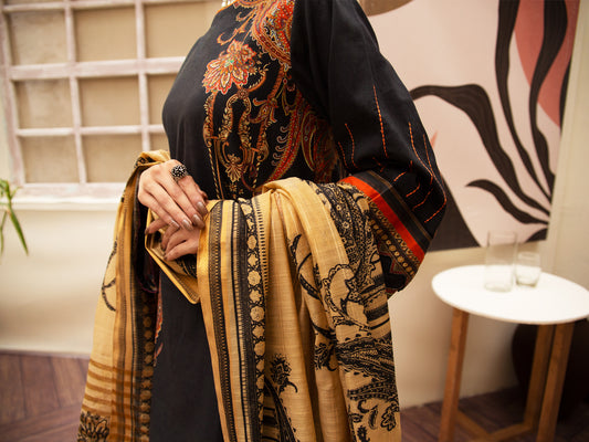 Black & Gold Viscose Silk 3Pc Unstitched - AWP-3PS-265